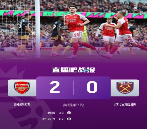 登顶!阿森纳2-0西汉姆 赖斯破旧主+伤退萨卡点射厄德高伤退