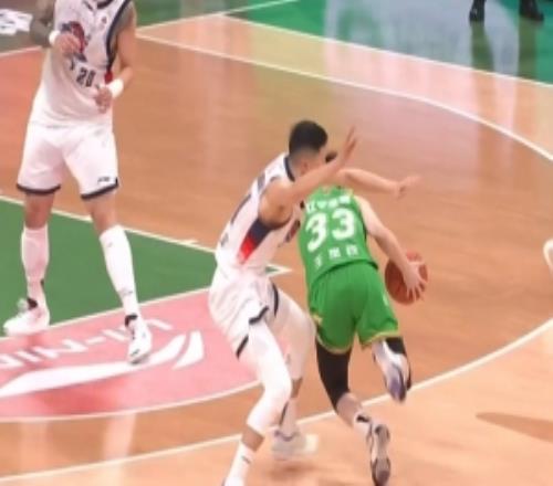 动作有点大!陈林坚防守搂倒王岚嵚被吹违体犯规