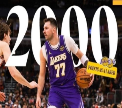 东契奇紫金生涯仅用65场砍下2000+湖人官方晒海报祝贺
